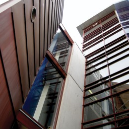 De architect heeft geprobeerd om met dit speelse gebouw tegenwicht te geven aan het strenge ontwerp van het Stadhuis, dat er schuin tegenover staat. Het gebouw heeft twee delen. De grootste ruimte van het gebouw ligt als een vissenlichaam langs Het Baken. Het is een langgerekt strak gedeelte dat de kromming van de straat volgt. Een kleinere ruimte ligt als een zwierige vissenstaart langs de Touwbaan. De kopgevel van het gebouw is voor een groot deel uit ultramarijn blauw glas opgetrokken net zoals de noordelijke kopgevel. De dakopbouw is van zink.