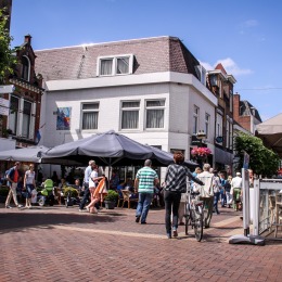 Grotestraat De Grotestraat is dé winkelstraat van Almelo, een lange straat van noord naar zuid. In de grote herenhuizen woonden vroeger textielhandelaren.