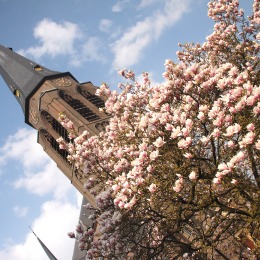 In 1934 werd het immense Salve Regina-raam in de toren voorzien van gebrandschilderd glas door J. ten Horn. Uniek in de regio is het middeleeuwse doopvont uit de 14de eeuw dat nog afkomstig is uit de oude kerk aan het Kerkplein.